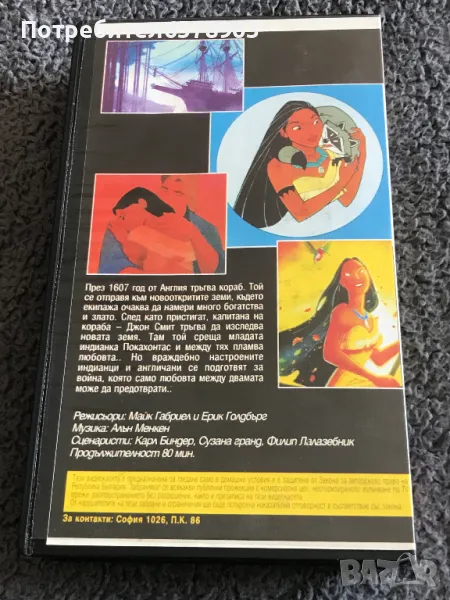 Продавам романтична-драма . Анимационна видеокасета на Дисни ''Покахонтас '' Много запазена , работи много добре . Озвучена на български език . Времетраене 80 минути . 1995 г. 17 снимки.