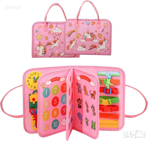 EVERGD Busy Board Montessori Универсална 7 в 1 образователна дъска, (еднорог, 3 слоя)