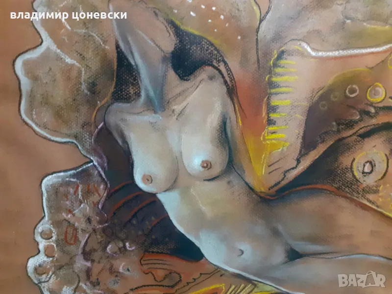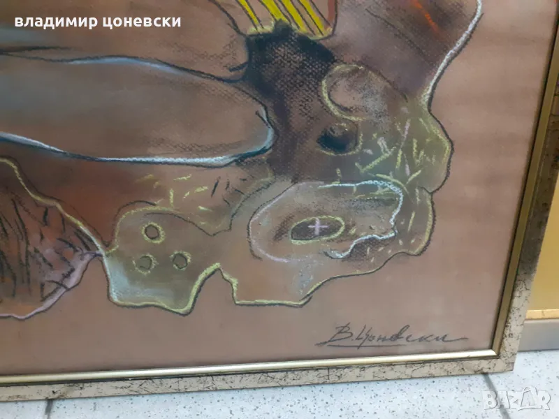 Картина пастел "Бягство", с рамка и стъкло,Размер с рамката 63/54см.Художник Владимир Цоневски