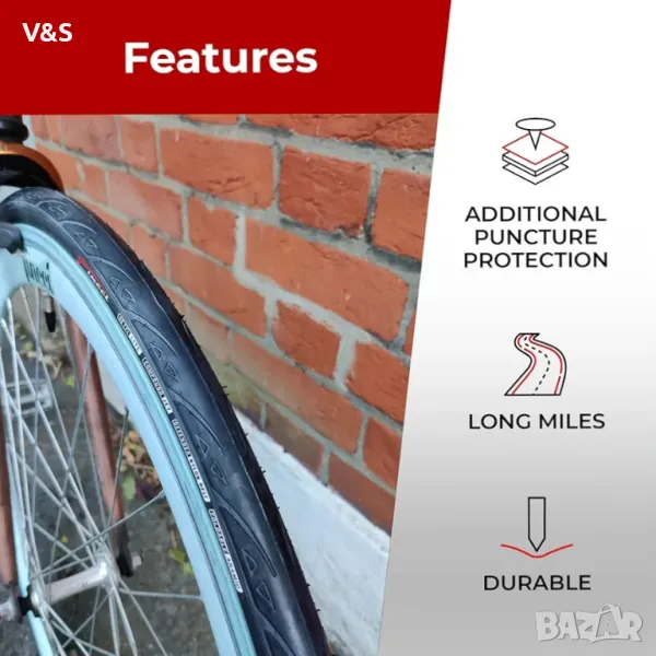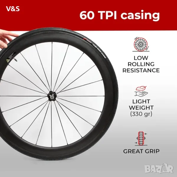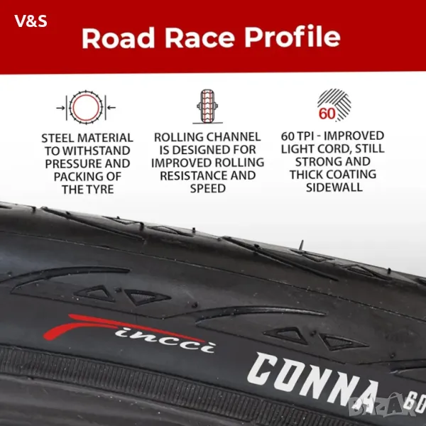 Fast Rolling протектор с високо сцепление за по-бързо и по-комфортно каране. Освен това осигурява добро сцепление върху неравни повърхности като асфалтови пътища или тротоари. Перфектна резервна гума за шосейни велосипеди с колела 700c