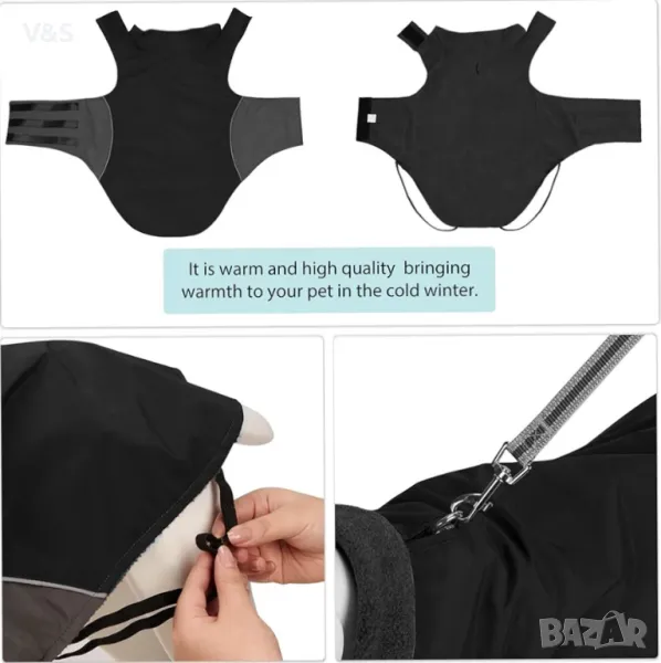 Bwiv Топло палто за кучета с регулируеми еластични презрамки Зимни якета за кучета Мека поларена подплата Яке за големи средни кучета с дупка за каишка Палта за кучета за големи кучета Снегоустойчиво черно на открито 5XL