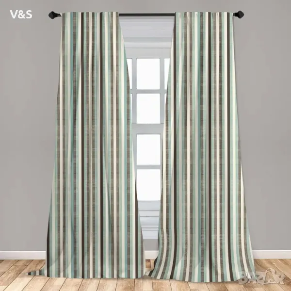 Ретро завеси ABAKUHAUS, раирани класически стари, декорация на прозорци за всекидневна, декор за спалня, опаковка от 2 бр., 75 см Ш x 175 см В, бадемово зелено, кафяво, кремаво