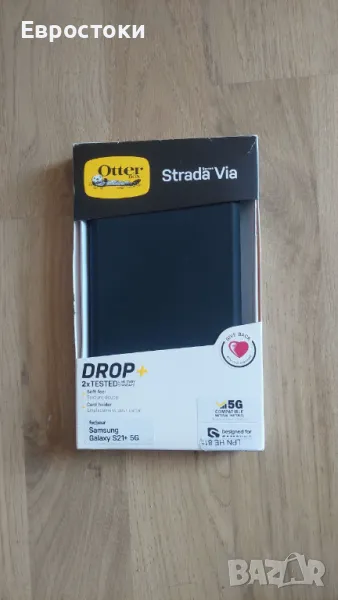 Защитен фолио калъф за мобилен телефон OtterBox Strada Via Series устойчив на удари и падане с държач за карта за Samsung Galaxy S21+ 5G, черен
