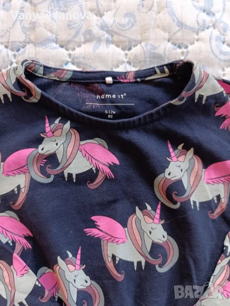 2. Рокличка с еднорози тъмносиня с дълъг 9-12 месеца, памук.