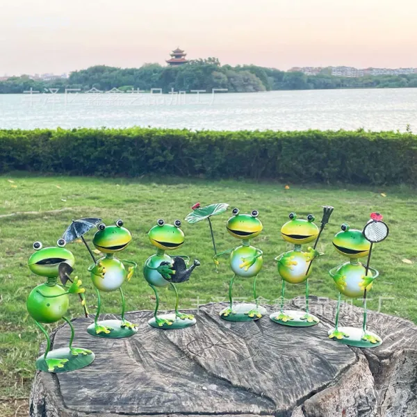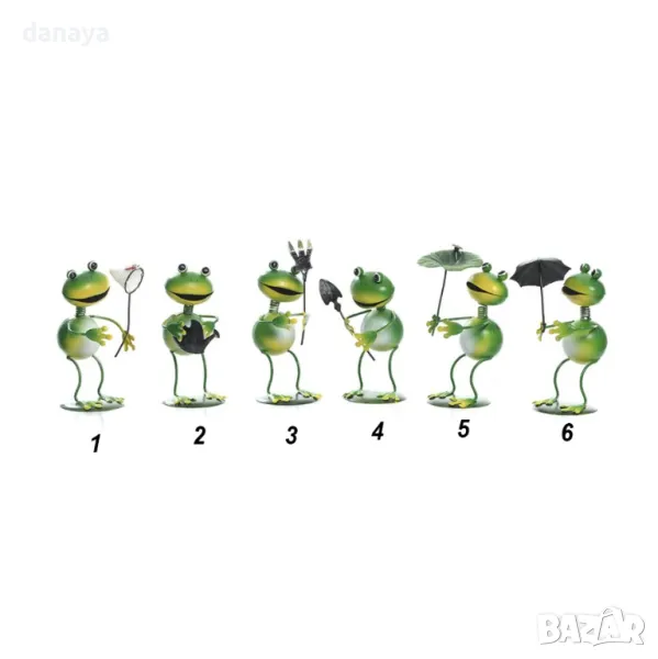 – 6 модела – всяка жаба държи различен инструмент: кепче, лейка, вила, лопата, листо или чадър