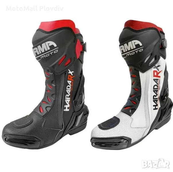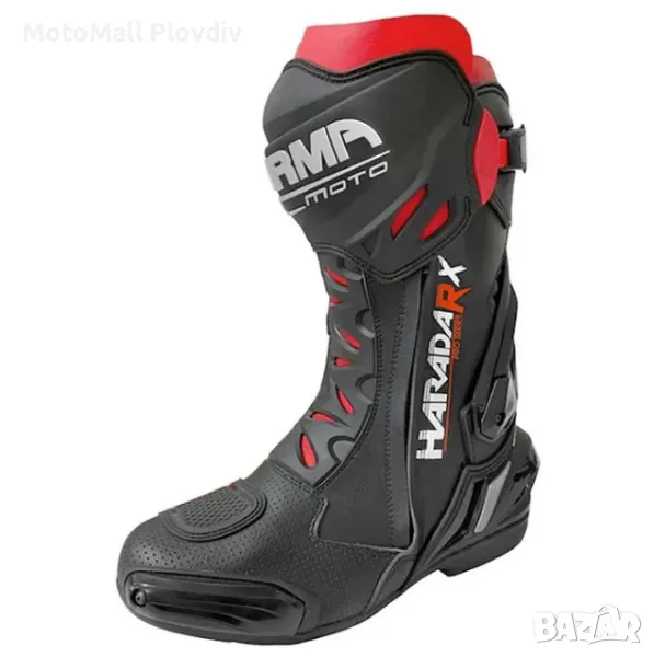 Ботушите за мотоциклети ARMR Moto Harada RX са чудесен избор за спортни ездачи след водеща на пазара технология на достъпна цена. Защитените от TPU зони на пищяла, глезена, петата и гърба предлагат най-добри нива на защита, без да се компрометира гъвкавостта. Добавянето на скоба за гърба подсилва областта на глезена. Комбинация от YKK ципове и закопчаване с кука и примка прави ботушите за мотоциклет бързи за плъзгане и събуване, като същевременно осигуряват здраво и безопасно прилягане. Предлага се в гама от цветове, които отговарят на всяка екипировка, велосипед и личен вкус!