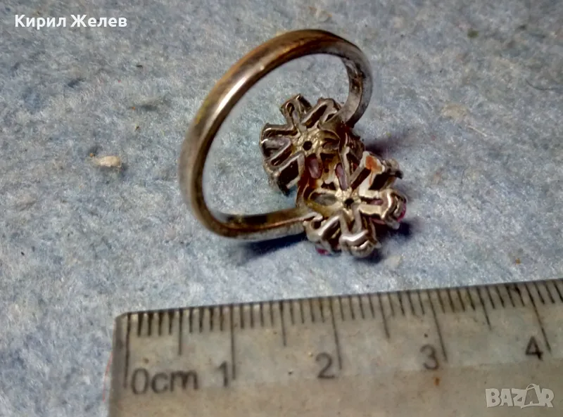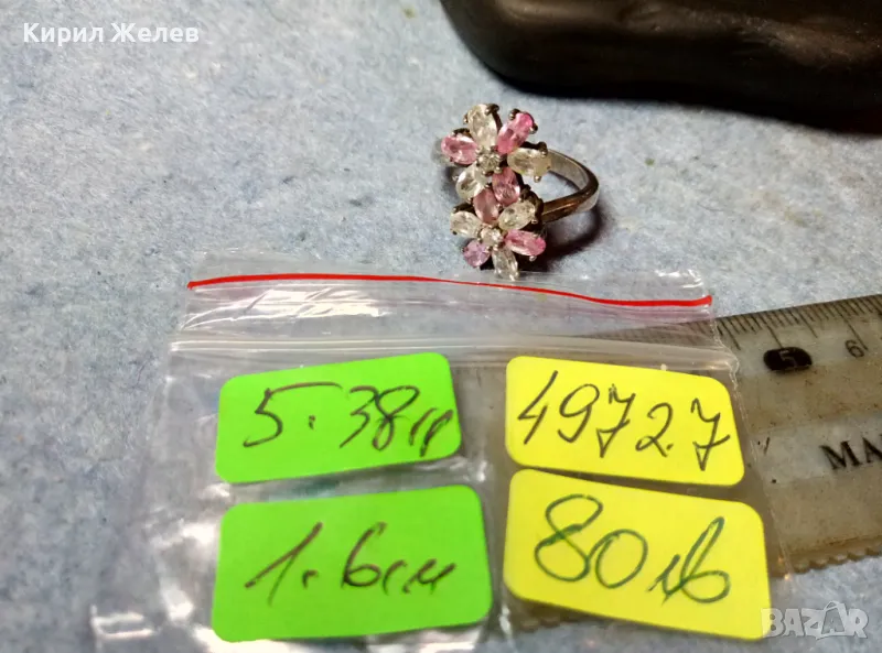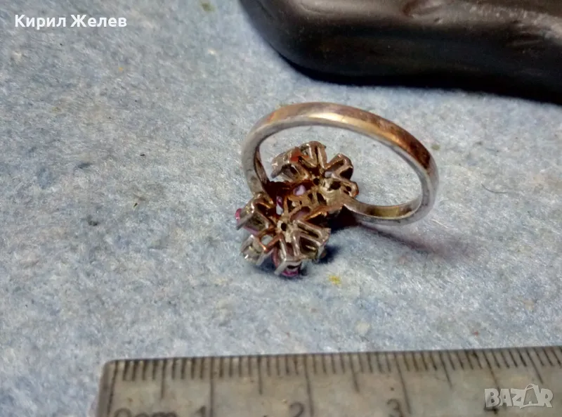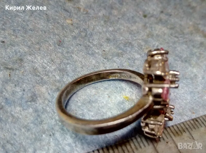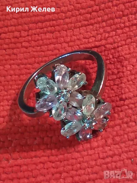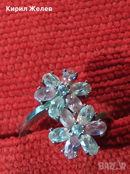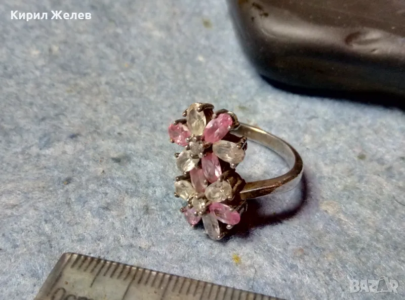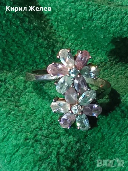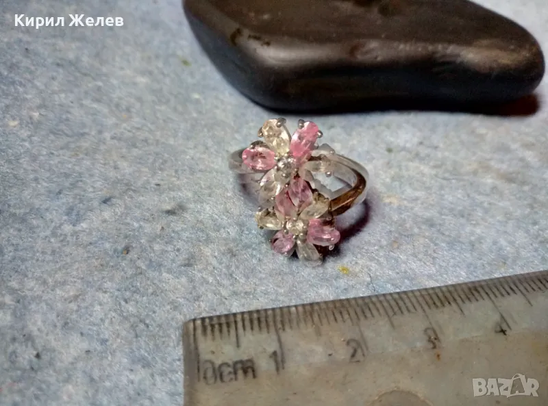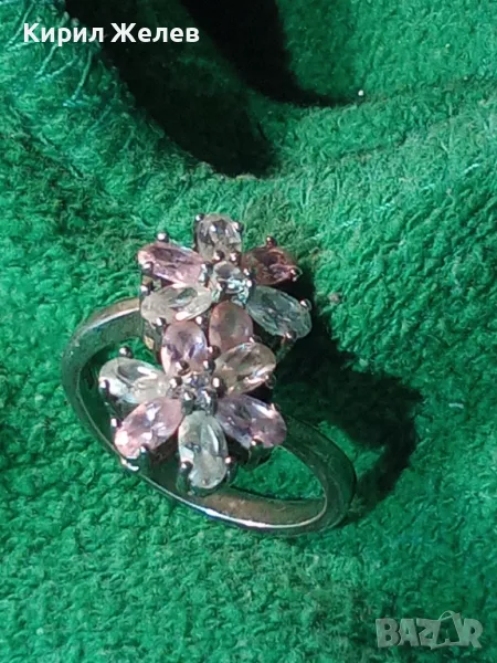 НЕЖЕН ФЛОРАЛЕН СКЪПОЦЕНЕН СРЕБЪРЕН ПРЪСТЕН ЦВЕТЯ РОДИРАНО СРЕБРО 925 с ПЛАНИНСКИ и РОЗОВ КВАРЦ 49727