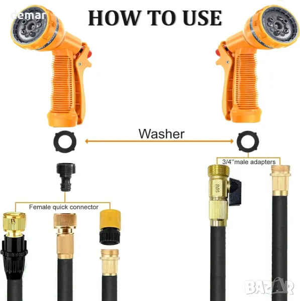 Този пистолет за пръскане с маркуч предлага 10 модела на поливане, включително мъгла, център, конус и пълен, което го прави идеален за миене на автомобили, поливане на растения или почистване на басейни и дворове. Той разполага с универсален 3/4 опашен интерфейс с бърз конектор, осигуряващ съвместимост с всички британски стандартни маркучи. Висококачественият, издръжлив накрайник има гумирана дръжка против приплъзване за удобен захват. Спестяваща труд заключваща лента задържа водния поток, без да изисква натиск, и можете да регулирате скоростта на потока и налягането за различни режими на пръскане. Гумените шайби предотвратяват изтичане за допълнително удобство.