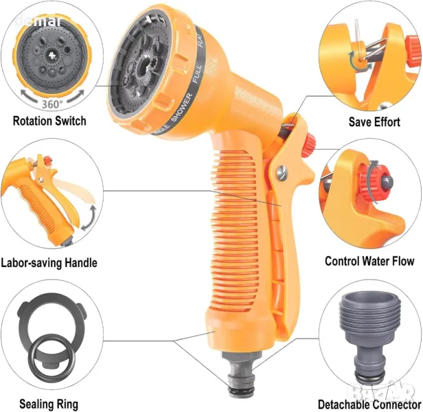 Пистолет за пръскане с маркуч HOMOZE, 10 модела на пръскане