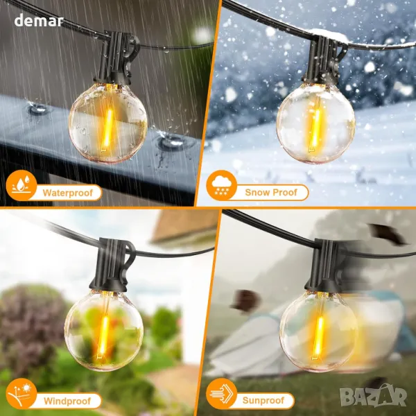Струнните лампи с ниско напрежение предлагат енергийна ефективност и повишена безопасност за семейна употреба. Устойчивите на разбиване LED Edison крушки осигуряват издръжливост с живот от 15 000 часа, намалявайки необходимостта от смяна. Затвореният дизайн и кабелите за ниско напрежение минимизират натрупването на топлина за по-безопасен монтаж. С IP64 водоустойчива защита, тези светлини издържат на дъжд, вятър и екстремни метеорологични условия, което ги прави подходящи както за вътрешни, така и за външни настройки. Лесни за окачване с вградени отвори, те създават уютна атмосфера за вътрешни дворове, градини, беседки, спални и събития като сватби, партита и празници.