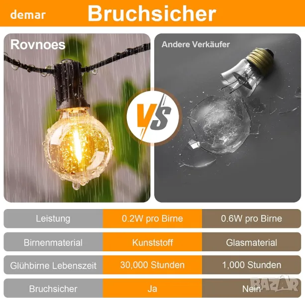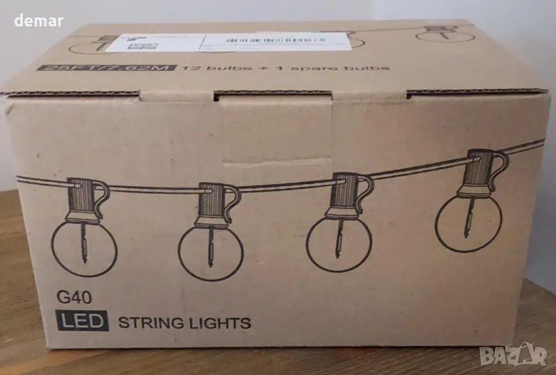Rovnoes Външни струнни светлини 7,6 метра, 12+1 G40 LED крушки, IP 64