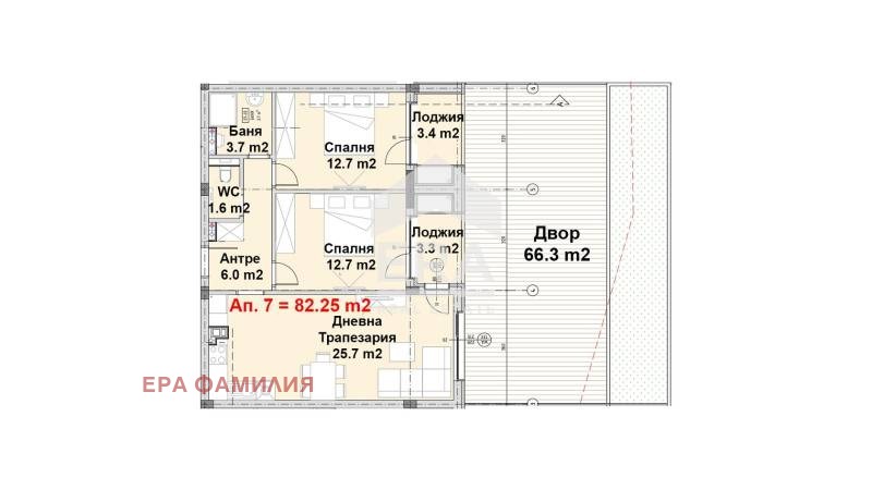 ЕРА ФАМИЛИЯ представя тристаен апартамент( N 7 ) с прилежащ двор с площ от 66,30 m2 , в нова луксозна сграда в кв.,, Малинова долина - един от най-бързо развиващите се квартал на гр.,,София