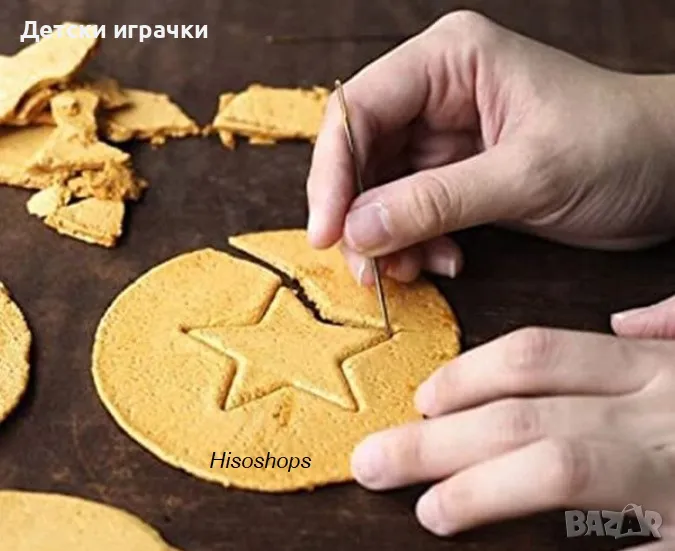 Комплектът включва 1 комплект тесто - моделин, различни формички и игла.