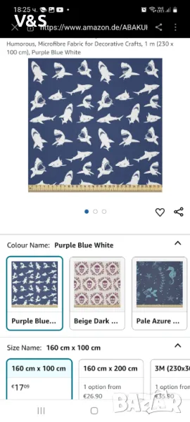 Тъкан ABAKUHAUS Shark, продаван на метри, хумор с различни жестове, плат от микрофибър за декоративни занаяти, 1 м (230 x 100 см), лилаво синьо бяло