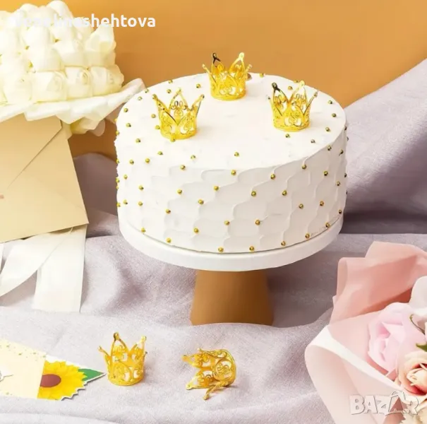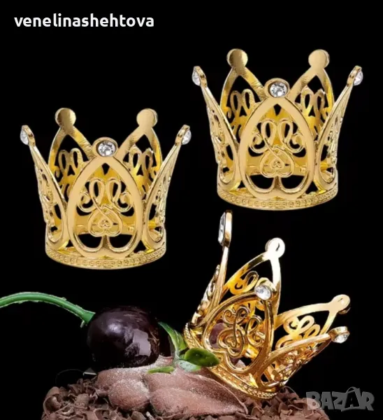 Мини златиста сребриста коронка корона тиара за декорация на торта букет → Обява 49247645