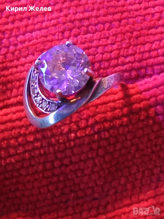 РАЗКОШЕН АЖУРЕН СКЪПОЦЕНЕН СРЕБЪРЕН ПРЪСТЕН СРЕБРО 925 с ЮВЕЛИРНО ФАСЕТИРАН АМЕТИСТ и ЦИРКОНИ 47517