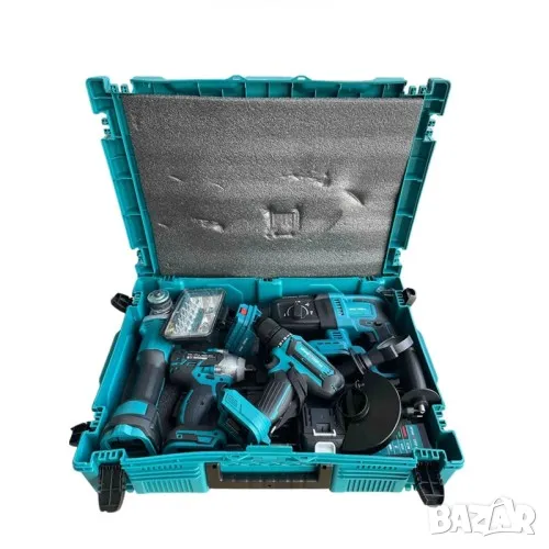 комплект електроинструменти, комплект от перфоратор, винтоверт, гайковерт, импакт, ъглошлайф и лампа, комплект с 3 батерии, акумулаторни инструменти, безжични инструменти, мултифункционален комплект, професионален инструментален комплект, инструменти за строителство и ремонт, акумулаторен перфоратор, акумулаторен винтоверт, акумулаторен гайковерт,