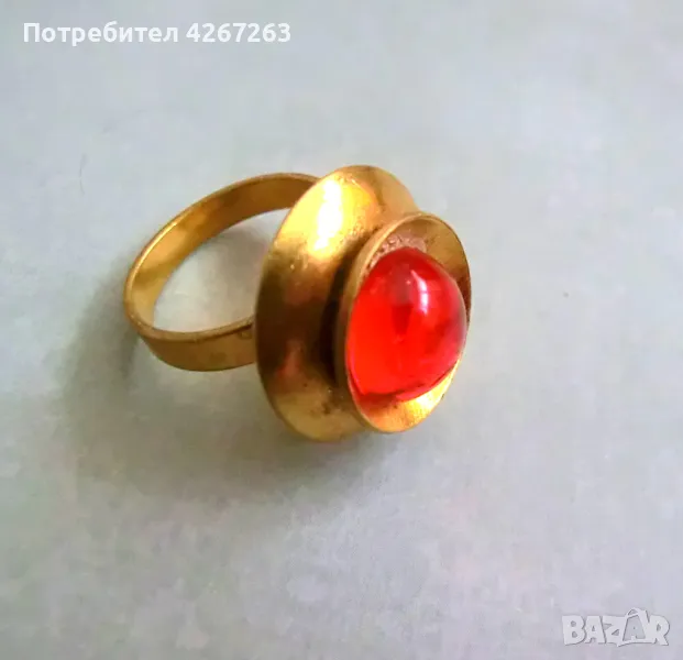 Стар дамски пръстен с червен стъклен кабошон → Обява 49249103