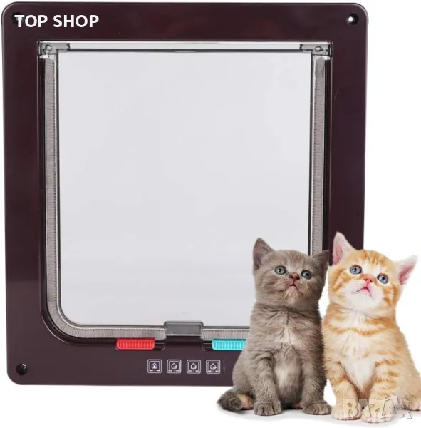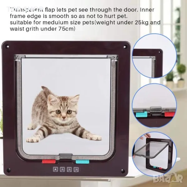 Врата за домашни любимци,прозрачна врата с клапа за котки (19 x 20) (кафява)
