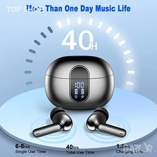 Безжичните наушници осигуряват 8 часа възпроизвеждане с едно зареждане, което може да бъде удължено до 40 часа с включения в комплекта калъф за зареждане. Интерфейсът за бързо зареждане Type-C гарантира, че наушниците могат да бъдат напълно заредени само за 1,5 часа. Калъфът за зареждане е снабден с LED дисплей, който ви позволява да следите нивото на батерията както на калъфа, така и на наушниците. Тази функция дава възможност за прецизен контрол на нивото на зареждане, като осигурява удобство по време на път.