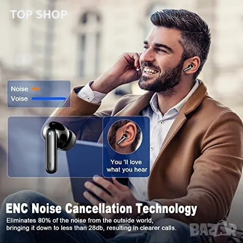 Благодарение на дизайна с 4 микрофона и технологията ENC (Environmental Noise Cancelling) тези безжични слушалки ефективно блокират 80% от фоновия шум, което позволява провеждането на ясни и непрекъснати телефонни разговори. Слушалките са снабдени и с прецизен сензорен чип, който позволява удобно управление с докосване. Функции като активиране на Siri, провеждане на разговори, смяна на музиката, контрол на силата на звука и приемане или отхвърляне на повиквания могат да се извършват лесно чрез докосване на всяка наушничка.