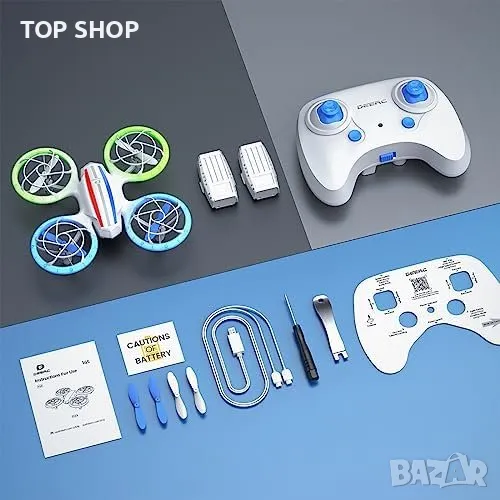 Един бутон за излитане и кацане, три скорости за избор, режим без глава за лесно определяне на посоката и функция за задържане на височината за автоматично зависване.