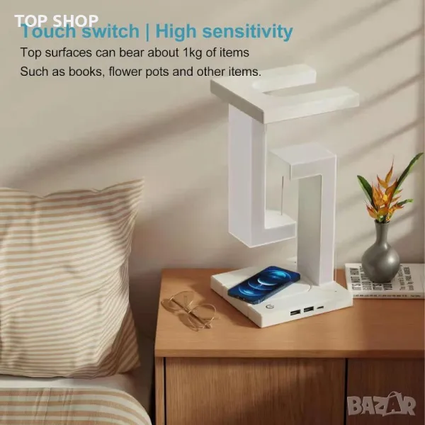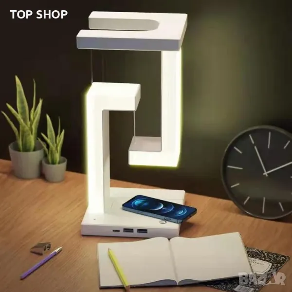 Tensegrity Магнитна левитационна настолна лампа, с USB порт Безжично зарядно устройство