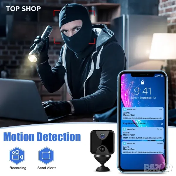 Мини WiFi камера - Преносима охранителна камера Откриване на движение Незабавна аларма IR Нощна версия Запис Лесно инсталиране