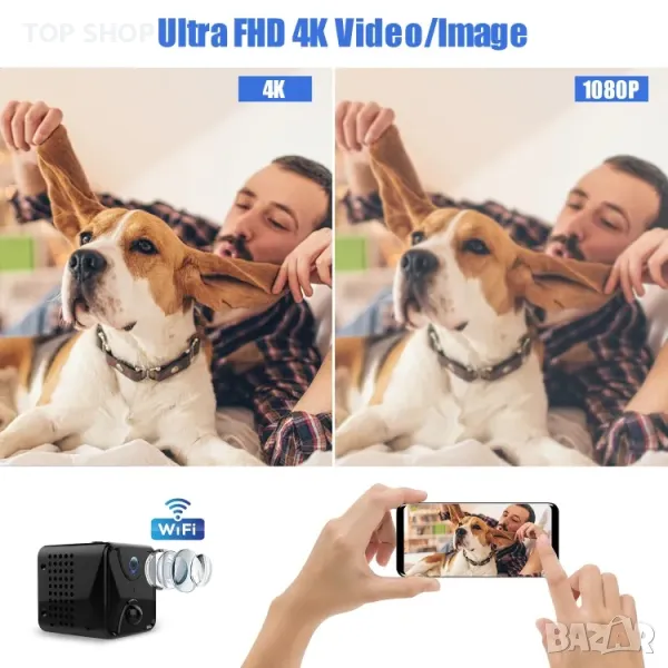 1. 4K HD качество на изображението: Насладете се на невероятно ясни и отчетливи изображения с нашата смарт камера R8. Уловете всеки детайл с висока разделителна способност, за да сте сигурни, че никога няма да загубите нищо.