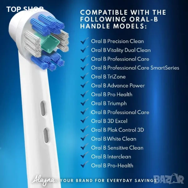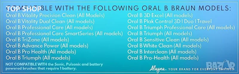 Съвместиви с всички стандартни модели четки за зъби с въртяща глава на Oral B