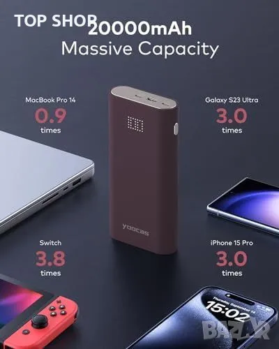 Нова 65W Бърза Зарядна Батерия: USB-C/A 20000mAh: Зарядно за Лаптоп и Телефон