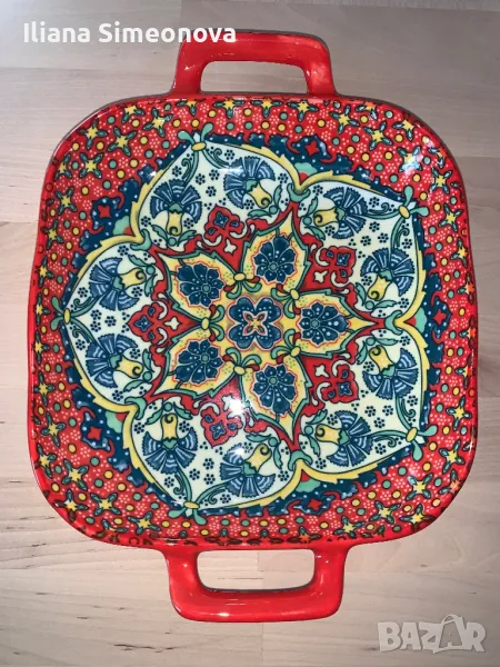 Размер 18 см.,дълбочина 5 см., с дръжките 23 см.