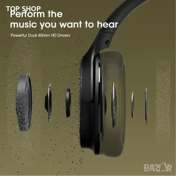 DOQAUS Life 5 Bluetooth слушалки Over Ear Безжични слушалки, 70 часа време за възпроизвеждане и 3EQ режима Безжични слушалки с микрофон, HiFi стерео звук, дълбок бас, чаши за уши от мемори пяна, за телефон PC Пътуване Домашен офис