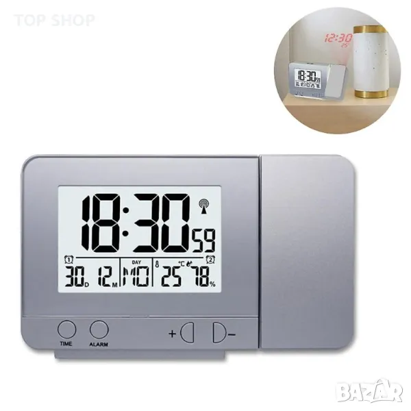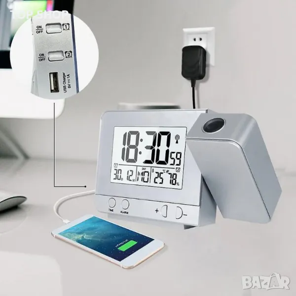 Прожекционен часовник с термометър, влагомер, USB слот,календар и будилник