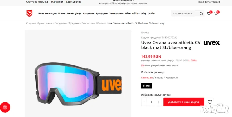 Нови , цена по магазините над 150 лева Очилата Uvex Athletic CV са любимият модел на марката, а лекият ретро дизайн крие в себе си най-новите технологии, за да осигури ясно виждане по пистите.