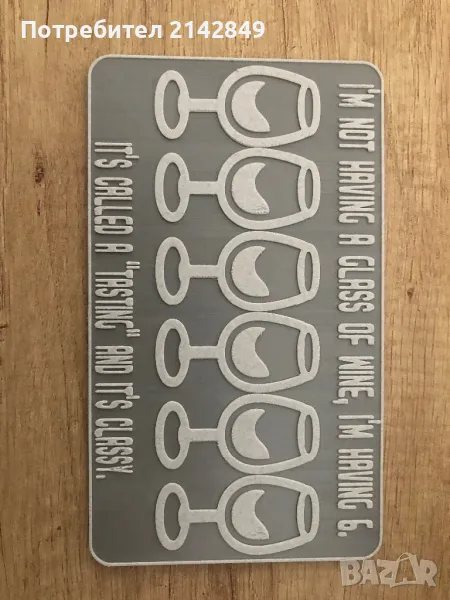 Изработвам чисто нови поставки за вино, които са идеален подарък за различни случаи, с размери 18см/10.5см, изработено на 3D принтер, материал - филамент. Може да бъде направено и в различни цветове! За повече информация може да пишете или по телефона.