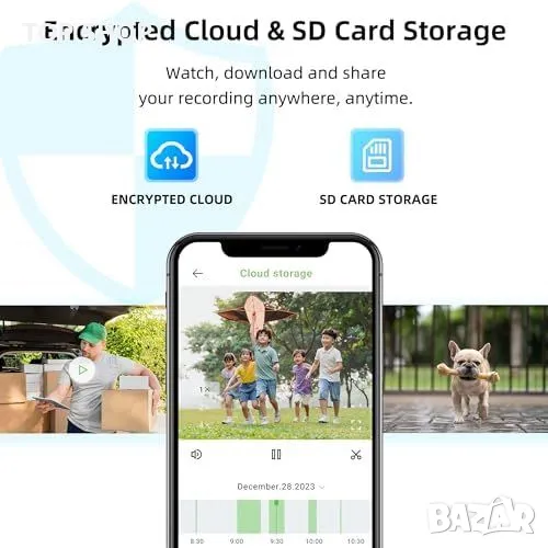 AES256 видео криптиране и облачно/SD карта хранилище до 128GB.