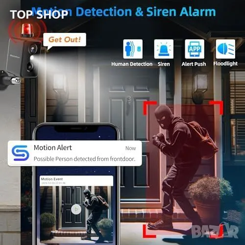 AI детекция и PIR датчик с сигнализация за точна идентификация на хора, домашни любимци, пакети или автомобили.