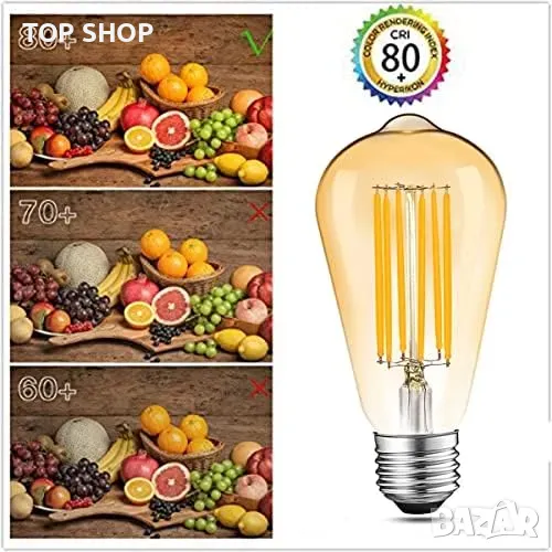 Ретро дизайн: LED крушки в стил Едисон с топло, 2700K светло и елегантно амбър стъкло.