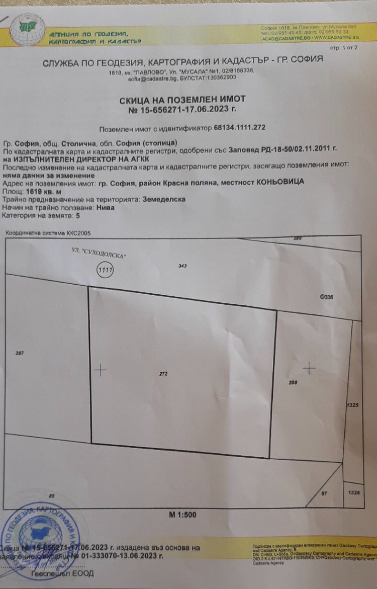 Парцелът е равен, с голямо лице 45метра на ул.Суходолска. Снабден е с ток.