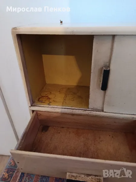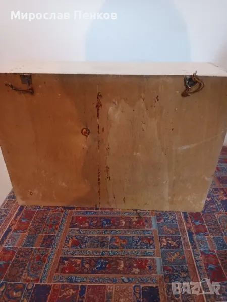 Стара дървена битова аптечка за стена Състояние видно от снимките.Без липси.Размери в снимките.