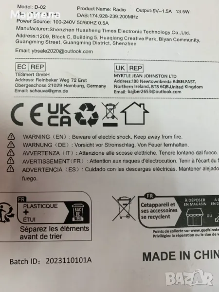 Аксесоари: радио х 1, захранващ адаптер х 1, дистанционно управление х 1. AUX кабел х 1.