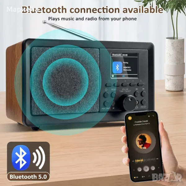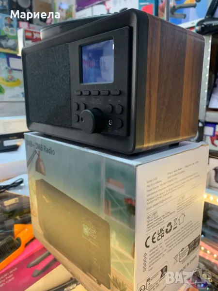 Радиото е закупено от разпродажба в Германия и е НОВО !Усъвършенствано DAB/DAB+/FM цифрово радио, FM радио и DAB+ цифрово радио предлагат разнообразен избор от изключително детайлен цифров звук, лесна настройка и бързо автоматично търсене. 2,4-инчов TFT по-ярък дисплей , интелигентни надстройки за лесна настройка и навигация. Уникално евкалиптово дърво .