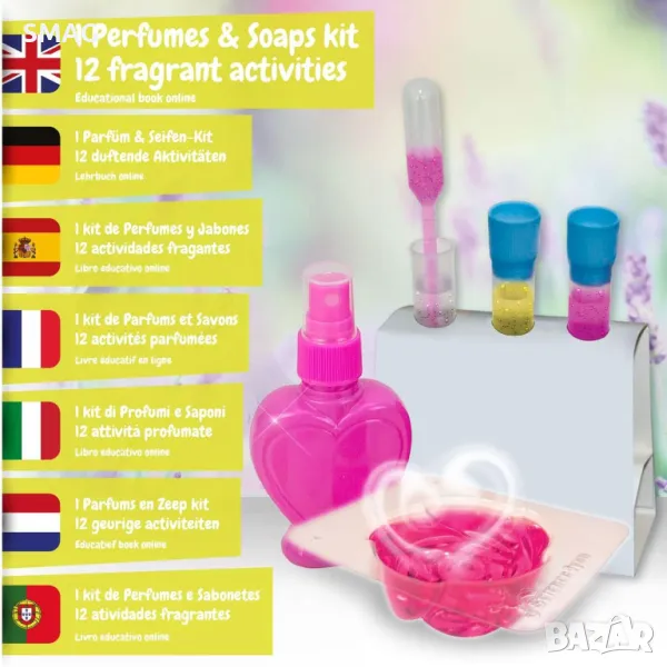 Работилница за изработване на Ваши уникални парфюми и сапуни с нежен аромат. Използвайте различни техники и научете това, от което се нуждаете, от книгата с инструкции.