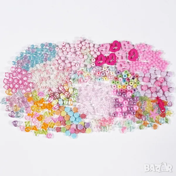 Комплект мъниста в различни дизайни и цветове за изработка на бижута. В опаковка с дизайн на замък. Комбинирайте мънистата и направете уникални творения!