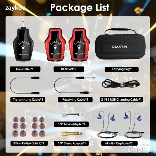 KIMAFUN Безжична система за слушалки за поставяне в ушите за сценично изпълнение, китарен усилвател