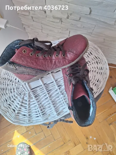 Ботите са без абсолютно никакви забележки,както се вижда от снимките,изработени от мека естествена кожа в цветова комбинация бордо и кафяво, подвижна стелка със система soft за удобство и мекота при носене.