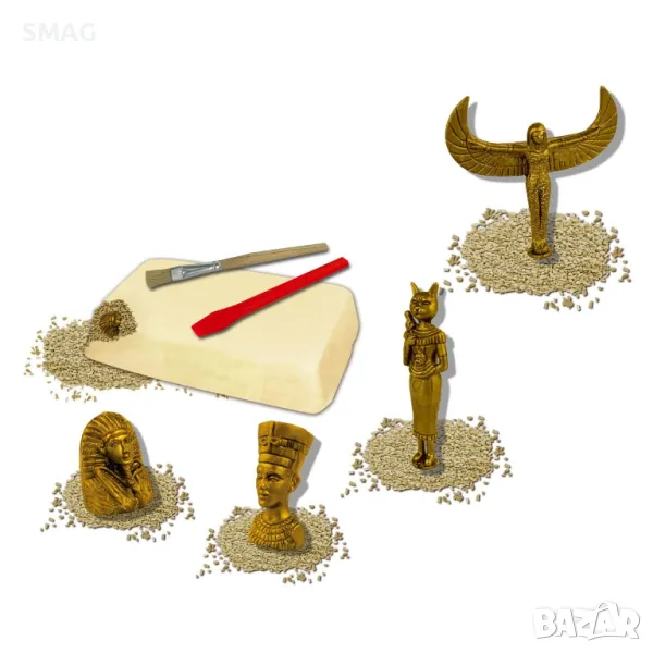 Игра откри египетски вкаменелости. Използвайте инструмента за разкопки, за да намерите египетските вкаменелости от гипсовия прът и използвайте четката, за да ги почистите и отстраните внимателно.