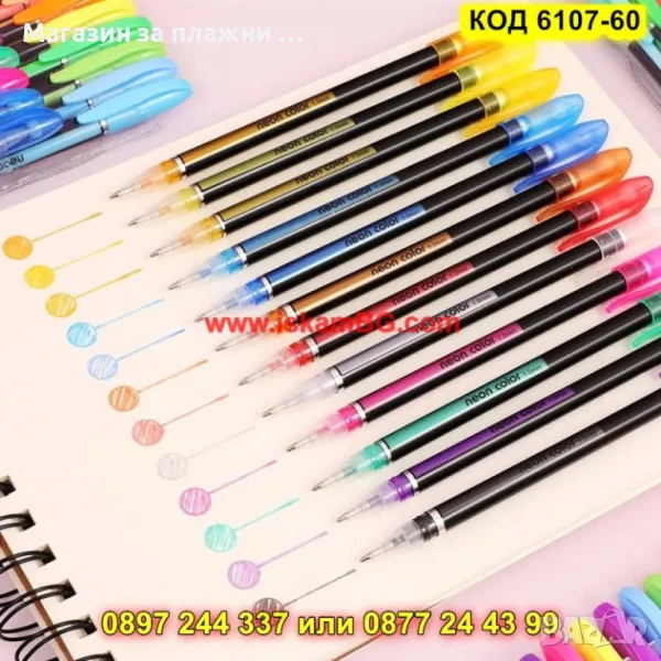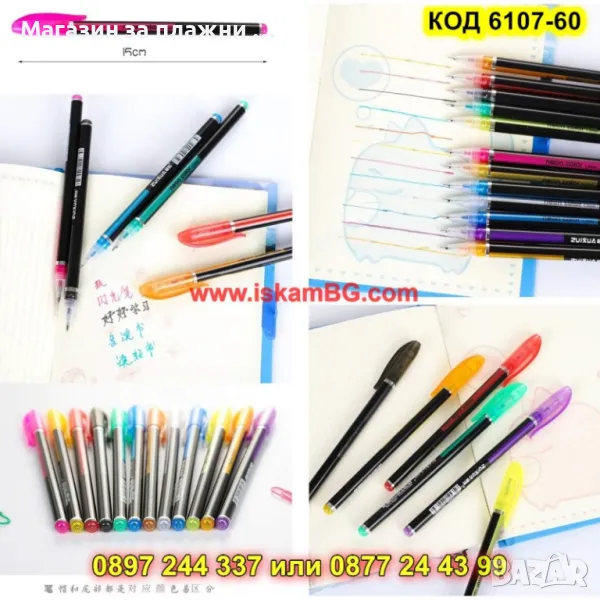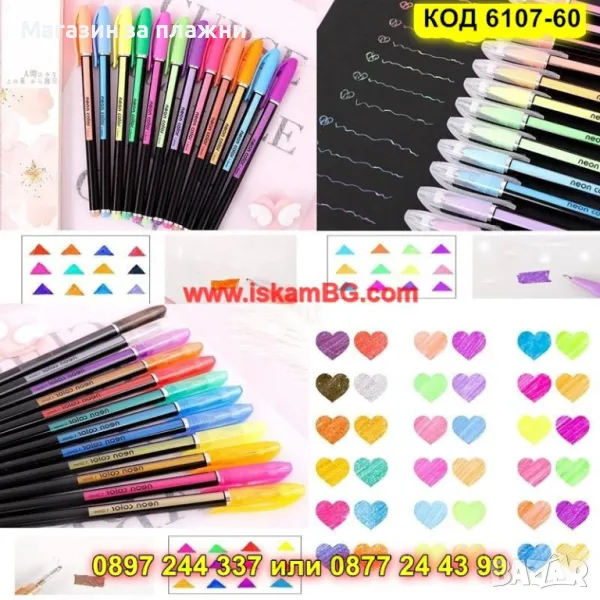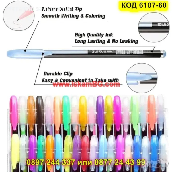 Комплект от 60 блестящи гел химикалки - КОД 6107-60