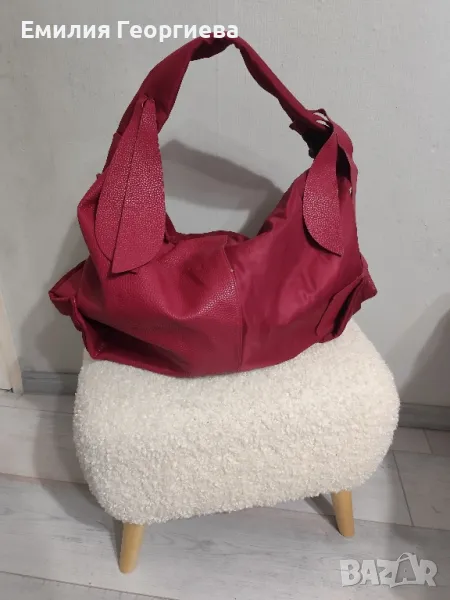 Голяма винено червена чанта с капси отстрани за да стане още по голяма, цена 10лв.